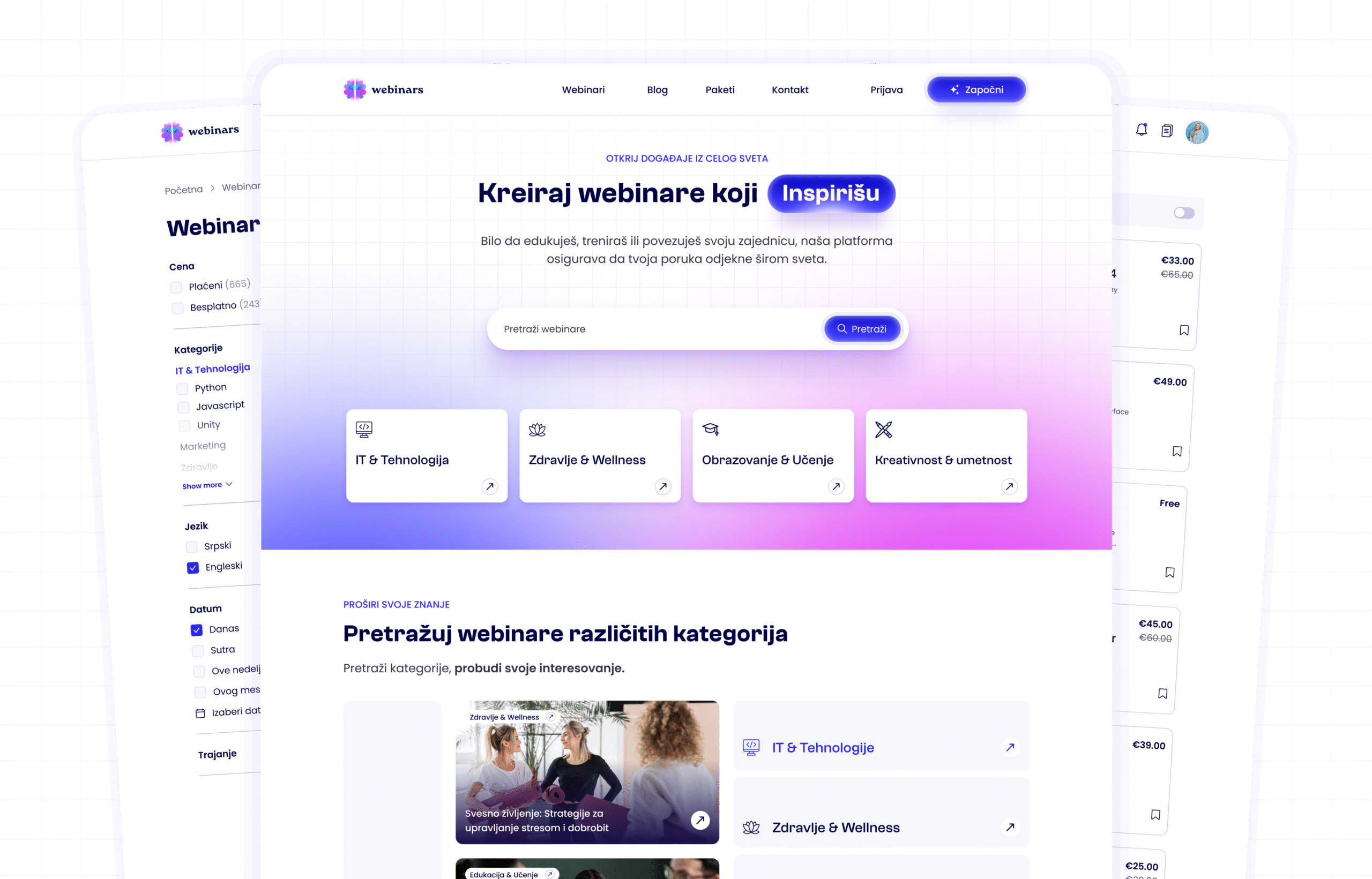 - Razvoj prilagođenih web aplikacija (SaaS platforme, portali, marketplace rešenja)